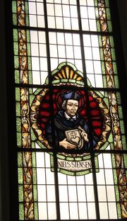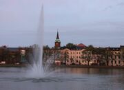Vis - a - vis der Schelfkirche befindet sich auf der westlichen Seite des Pfaffenteiches auf einer künstlich errichteten Anhöhe die Paulskirche. Es ist ein hochgotischer Bau und 1863 geweiht worden. Im Innern gibt es ein reiches theologisches Bildprogramm und die größte Friese - Orgel.